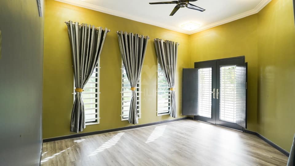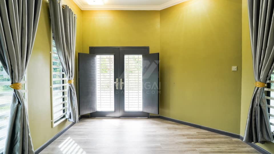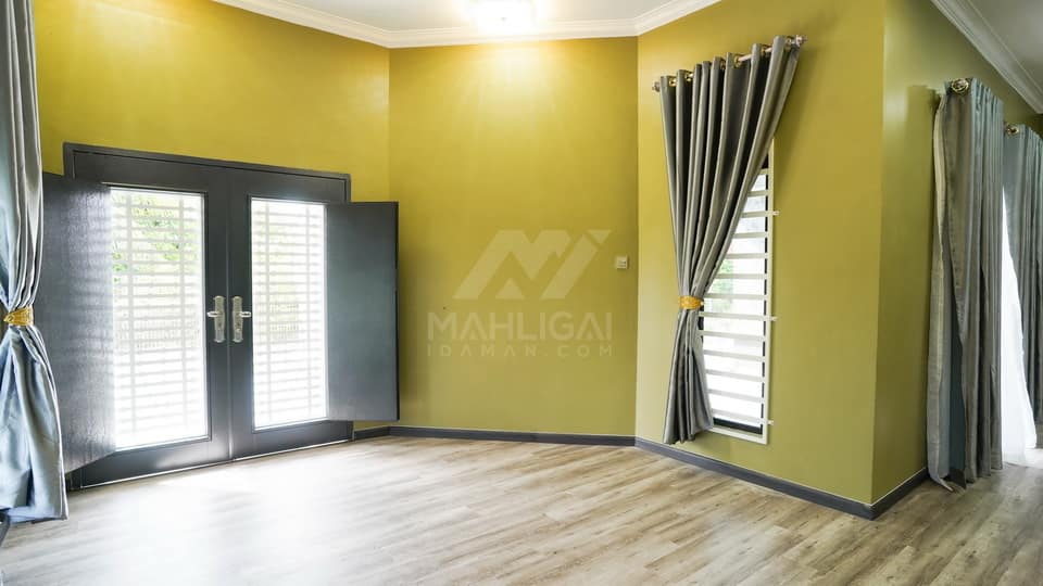 Banglo ini dibina dengan spesifikasi asas Pakej Gold dan beberapa penambahan dari sudut design seperti pemasangan kayu hiasan (Kayu Seraya) pada bahagian veranda dan pintu masuk utama, pemasangan batu hiasan pada bahagian tiang dan dinding pintu masuk utama, torehan grooveline pada bahagian bumbung dan dinding rumah serta pemasangan cornice pada bahagian tingkap dan dinding rumah.