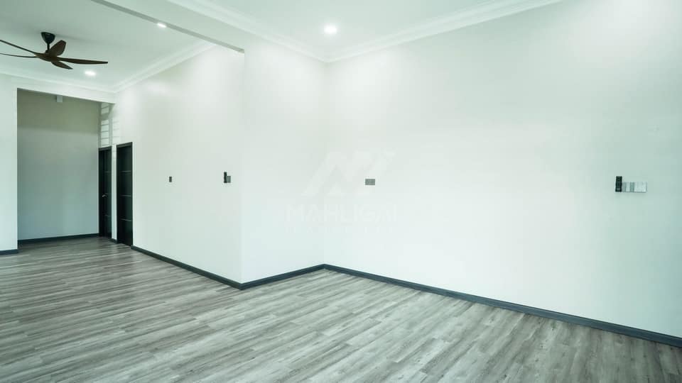 Banglo ini dibina dengan spesifikasi asas Pakej Silver dan beberapa penambahan dari sudut design seperti pemasangan shera board pada bahagian bumbung dan dinding luar rumah serta pemasangan cornice pada bahagian tingkap dan dinding rumah.
