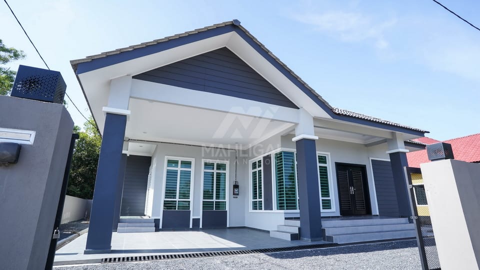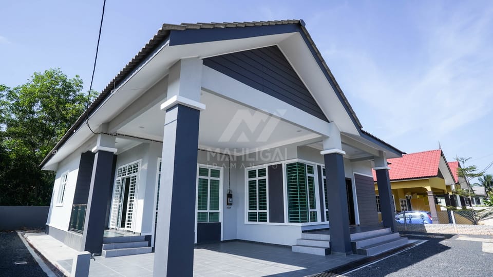 Kini banglo milik klien kami Pn Hidayah telah siap dibina sepenuhnya di Paka, Terengganu dilengkapi dengan tiga bilik tidur dan tiga bilik air. Banglo yang berkeluasan 2,067 kaki persegi, banglo ini menggabungkan ciri-ciri banglo moden iaitu dari segi rekabentuk dalaman dan luaran yang sangat menarik. Dari segi penggunaan tona warna pula, gabungan warna Dark Grey dan puteh akan menaikkan lagi kontra warna tersebut serta kelihatan lebih menarik.