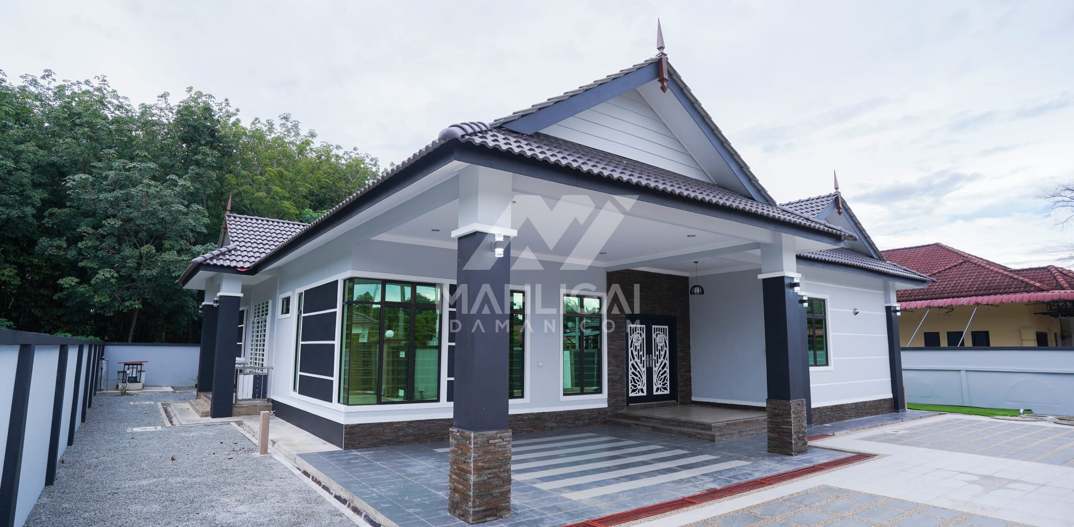 Kini banglo milik klien kami Pn. Nor Azah telah siap dibina sepenuhnya di Kadok, Kota Bharu dilengkapi dengan lima bilik tidur dan empat bilik air. Banglo yang berkeluasan 2,665 kaki persegi, banglo ini menggabungkan ciri-ciri banglo moden iaitu dari segi rekabentuk dalaman dan luaran yang sangat menarik. Dari segi penggunaan tona warna pula, gabungan warna Dark Grey dan Light Grey akan menaikkan lagi kontra warna tersebut serta kelihatan lebih menarik.