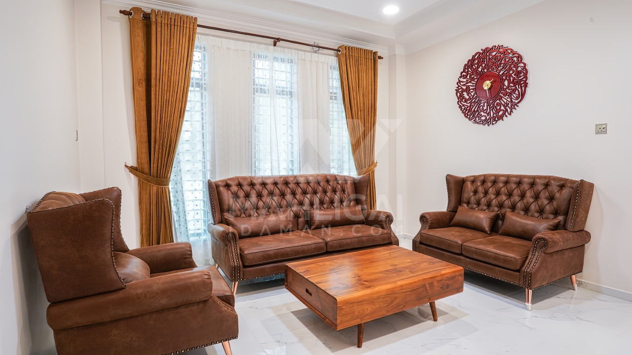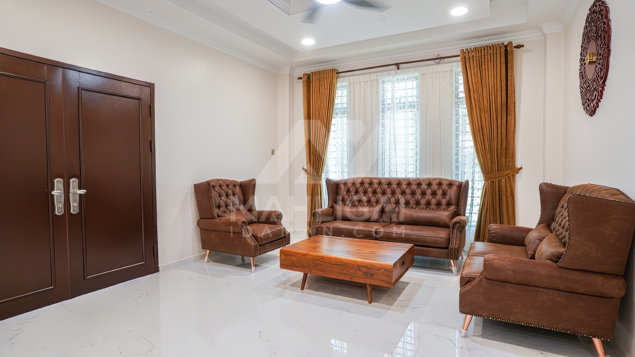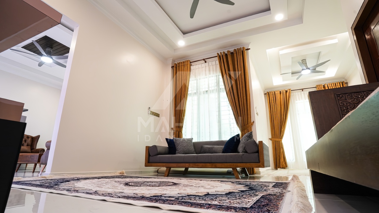 Banglo ini dibina dengan spesifikasi asas Pakej Silver dengan penambahan aksesori iaitu pemasangan cornice pada keseluruhan tingkap luar rumah, batu hiasan pada dinding dan tiang luar rumah menaikan lagi seri rumah.