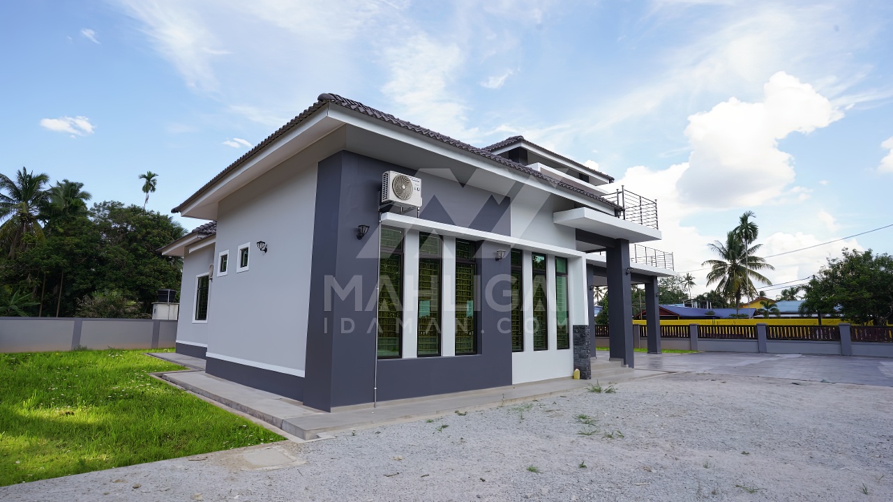 Banglo milik klien kami Che Radziah telah siap dibina sepenuhnya di Padang Siam, Tanah Merah, Kelantan dilengkapi dengan lima (5) bilik tidur dan enam (6) bilik air. Banglo yang berkeluasan 3,662 kaki persegi, banglo ini menggabungkan ciri-ciri banglo moden iaitu dari segi rekabentuk dalaman dan luaran yang sangat menarik. Dari segi penggunaan tona warna putih dan dark grey menaikkan lagi kontra warna tersebut.