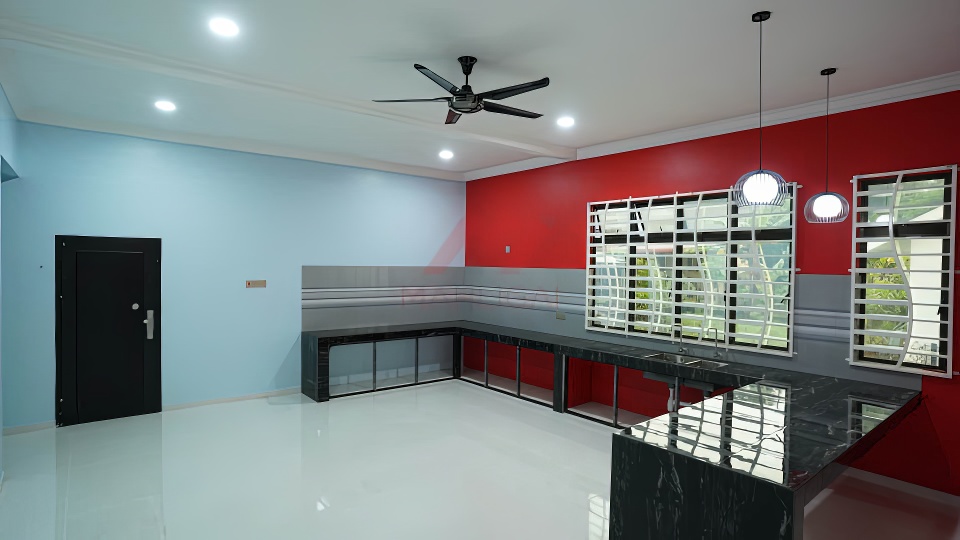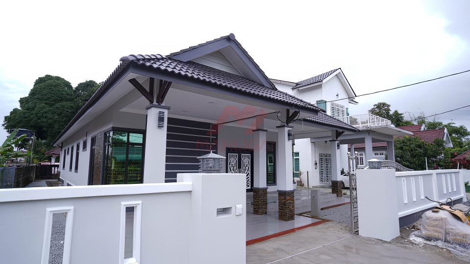 Banglo milik klien kami Puan Illiani kini telah siap dibina sepenuhnya di Kubang Kerian, Kota Bharu, Kelantan dilengkapi dengan tiga (3) bilik tidur dan tiga (3) bilik air. Banglo yang berkeluasan 2,644 kaki persegi, banglo ini menggabungkan ciri-ciri banglo moden iaitu dari segi rekabentuk dalaman dan luaran yang sangat menarik. Dari segi penggunaan tona warna putih dan dark grey menaikkan lagi kontra warna tersebut.