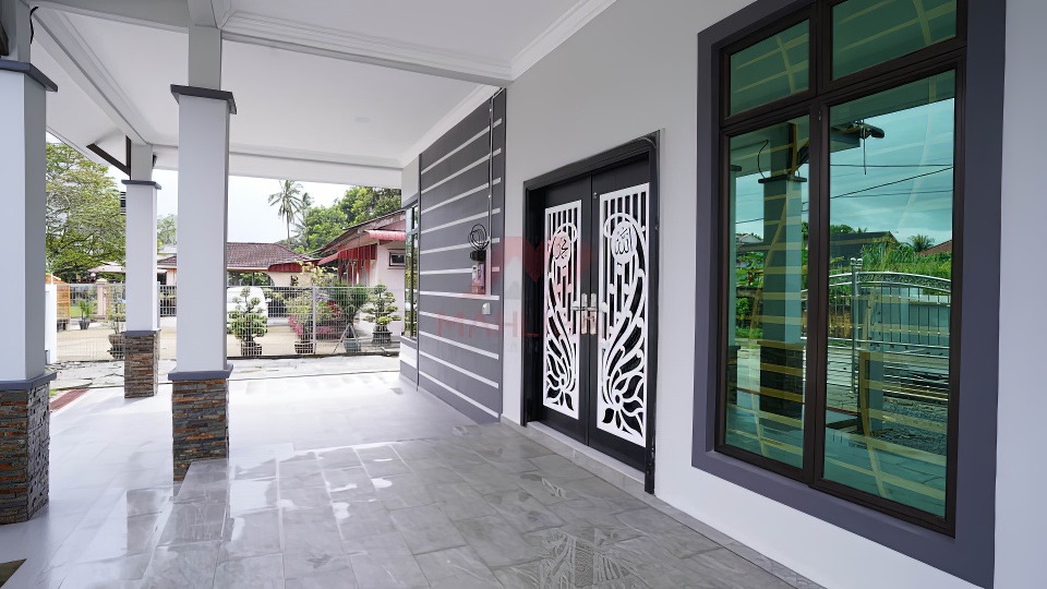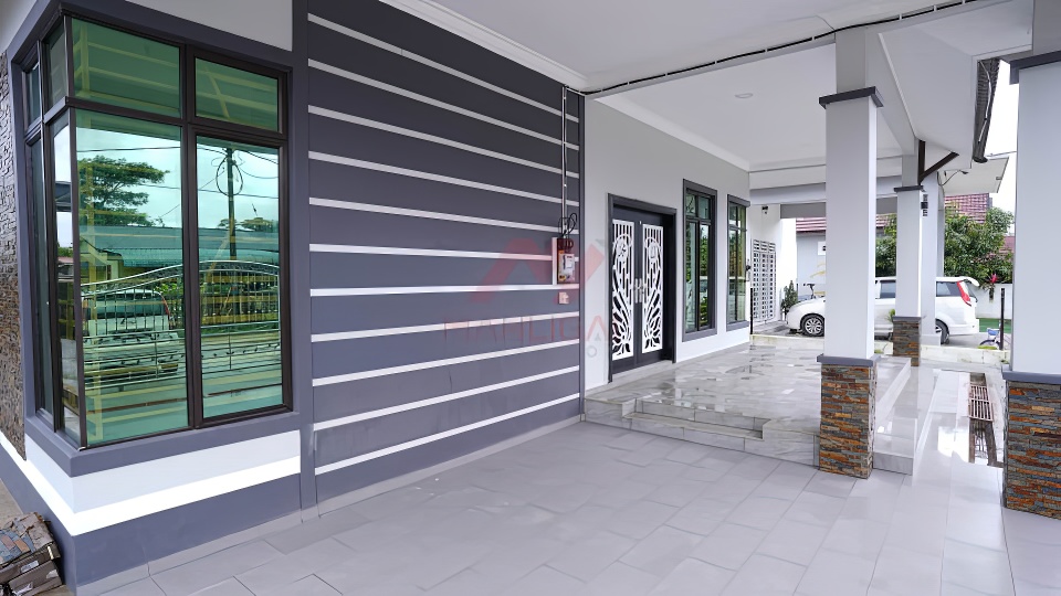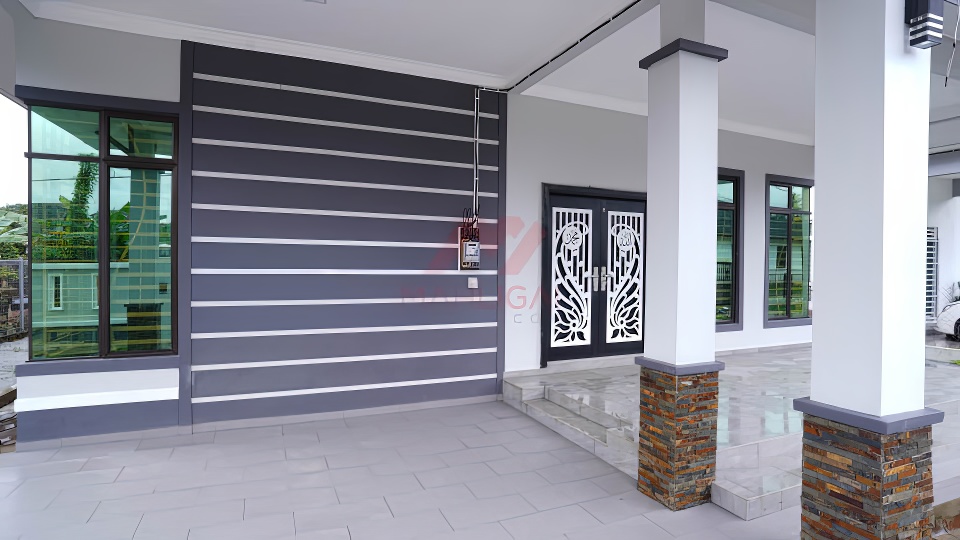 Banglo ini dibina dengan spesifikasi asas pakej silver dengan penambahan aksesori iaitu pemasangan cornice pada keseluruhan tingkap luar rumah, batu hiasan pada tiang luar rumah menaikan lagi seri rumah.
