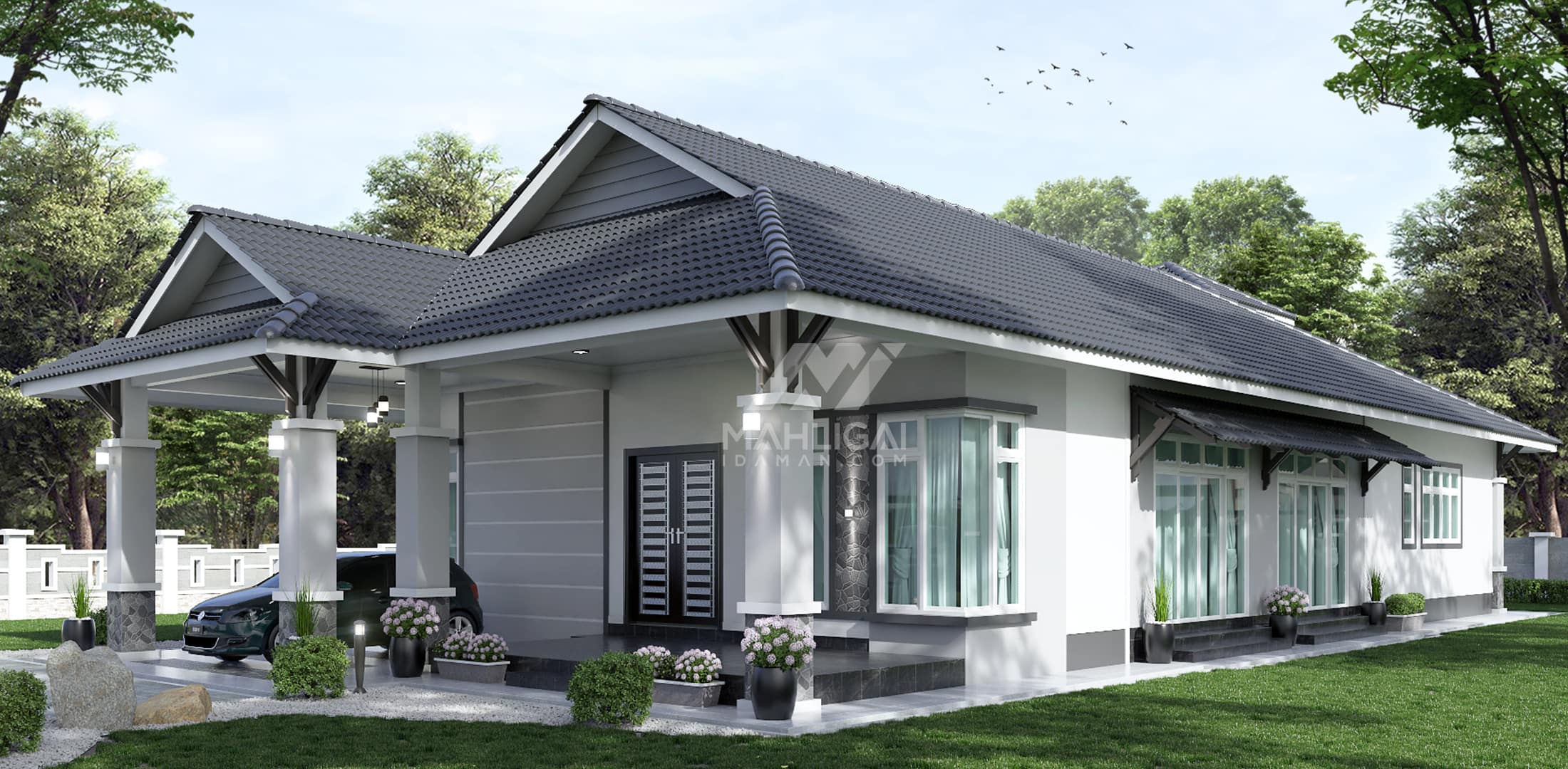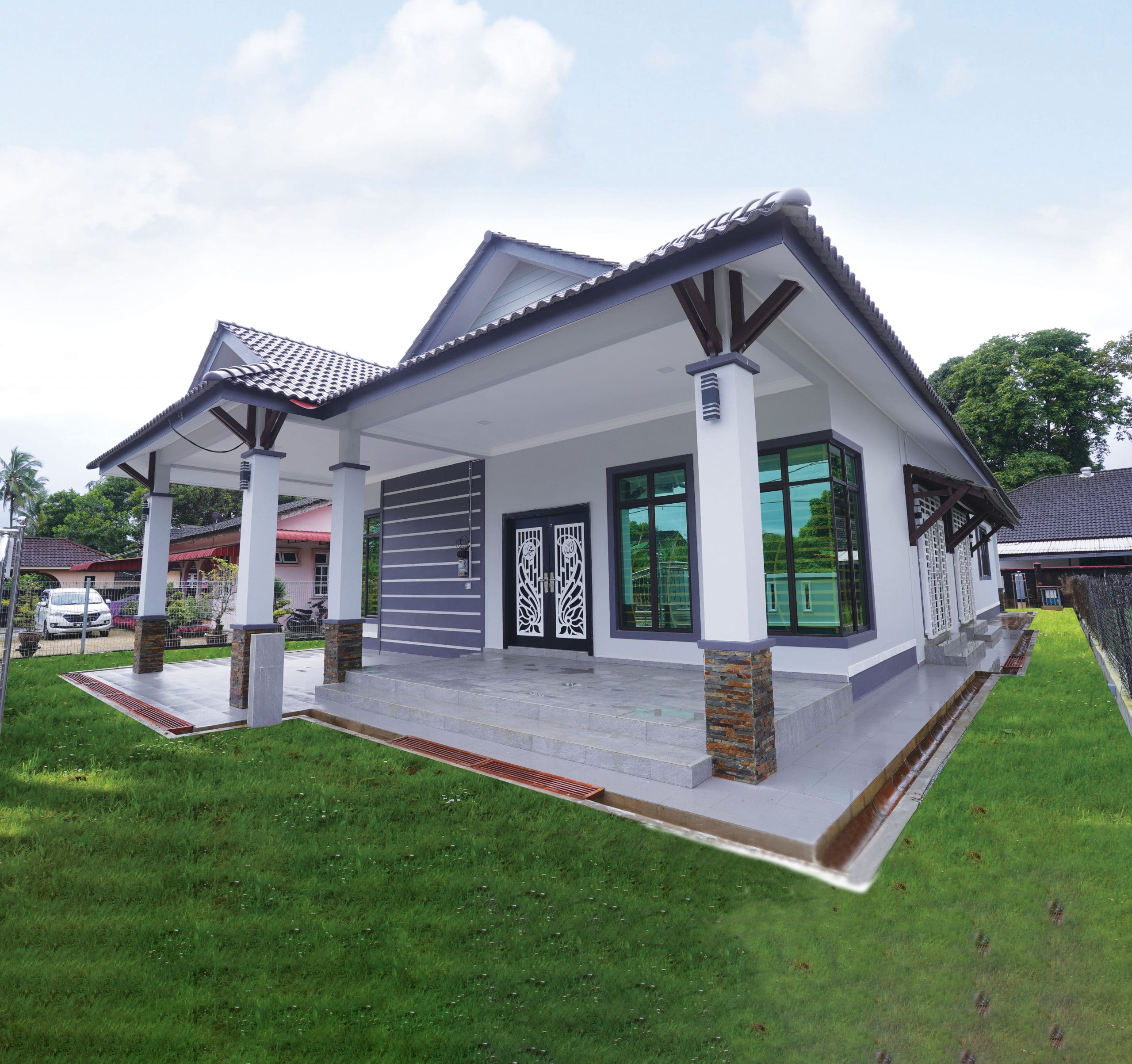 Kini banglo milik klien kami Pn Illiani telah siap dibina sepenuhnya di Kubang Kerian, Kota Bharu Kelantan dilengkapi dengan tiga bilik tidur dan tiga bilik air. Banglo yang berkeluasan 2,644 kaki persegi, banglo ini menggabungkan ciri-ciri banglo moden iaitu dari segi rekabentuk dalaman dan luaran yang sangat menarik. Dari segi penggunaan tona warna putih dan Dark Grey menaikkan lagi kontra warna tersebut.