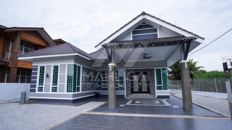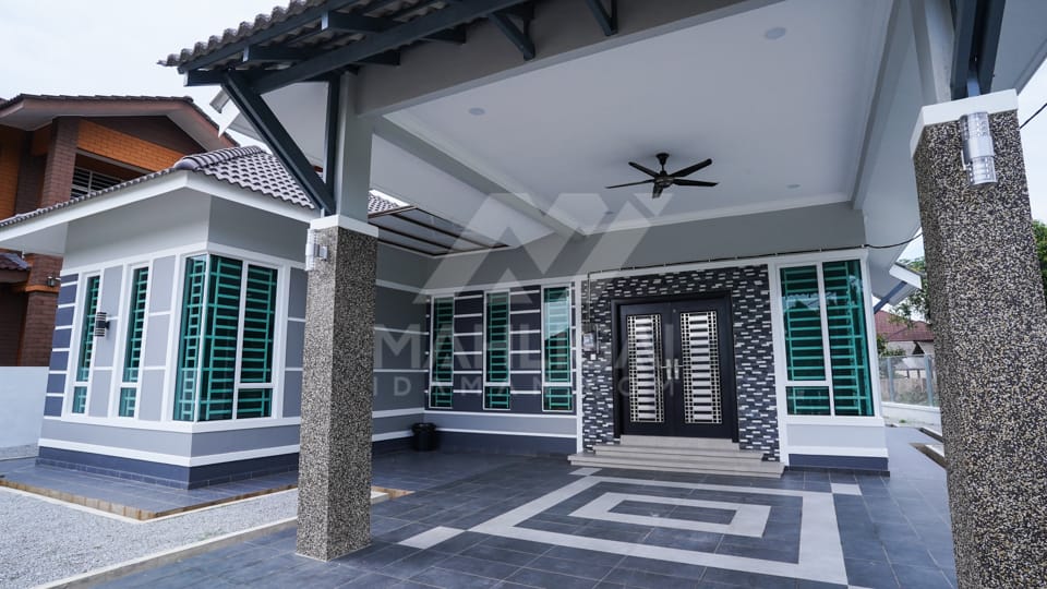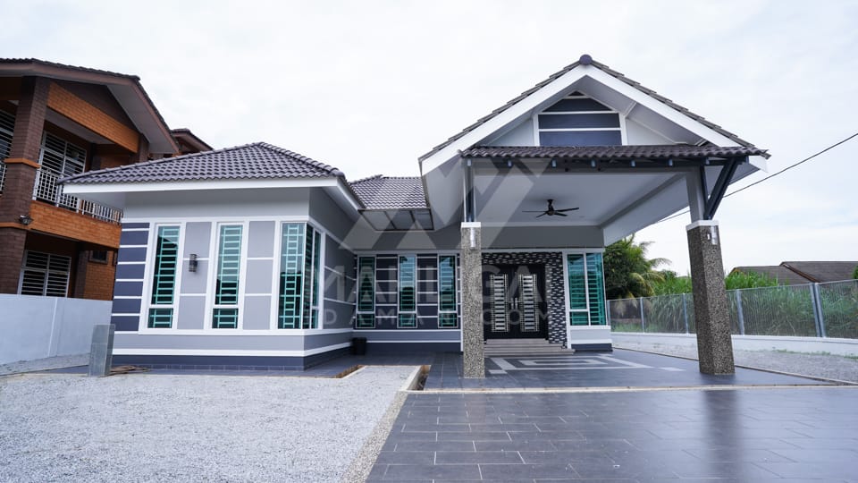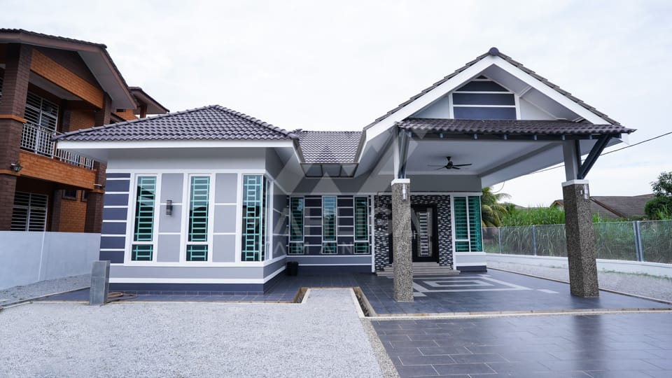 Kini banglo milik klien kami En Roslan telah siap dibina sepenuhnya di Kg Perol Peringat Kota Bharu Kelantan dilengkapi dengan empat bilik tidur dan tiga bilik air. Banglo yang berkeluasan 2,053 kaki persegi, banglo ini menggabungkan ciri-ciri banglo moden iaitu dari segi rekabentuk dalaman dan luaran yang sangat menarik. Dari segi penggunaan tona warna dark grey dan grey menaikkan lagi kontra warna rumah tersebut.