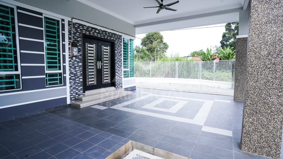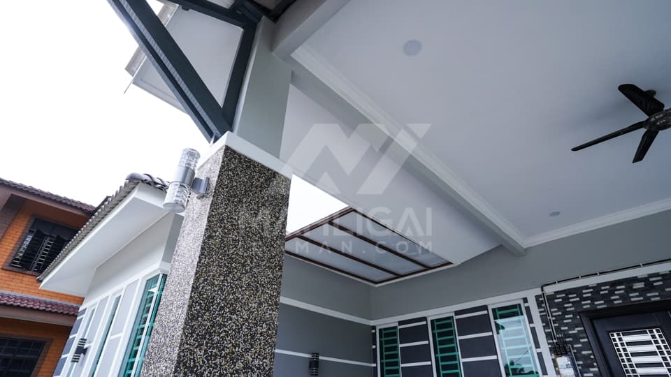 Banglo ini dibina dengan spesifikasi asas Pakej Silver dengan penambahan aksesori iaitu pemasangan cornice pada keseluruhan tingkap luar rumah dan batu hiasan pada dinding dan tiang luar rumah dan juga kayu tetupang pada tiang luar menaikan lagi seri rumah.