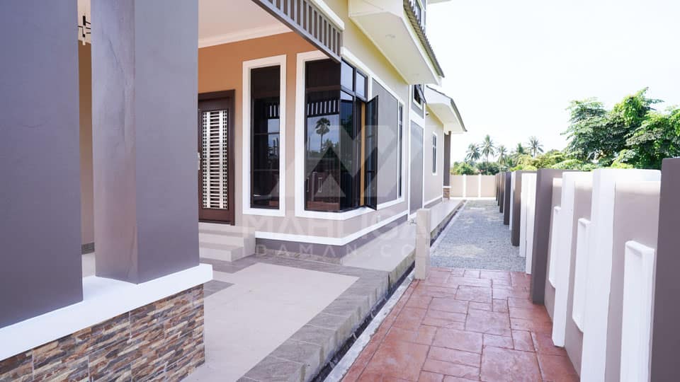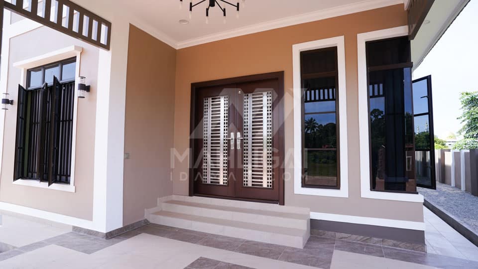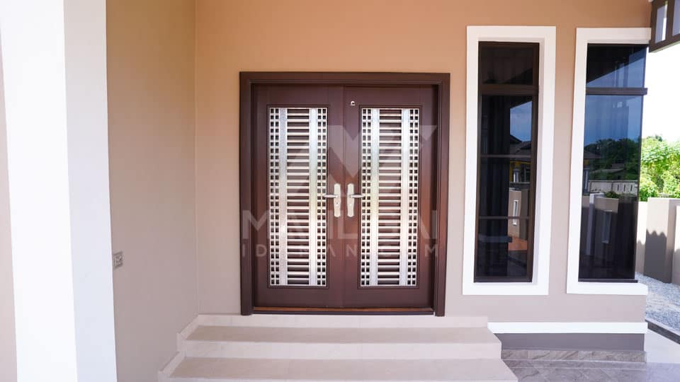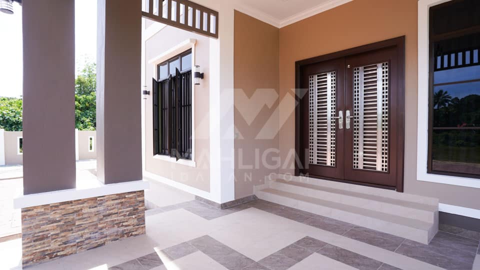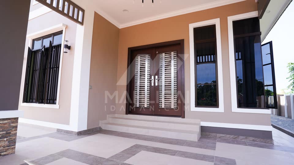 Banglo ini dibina dengan spesifikasi asas Pakej Silver dengan penambahan aksesori iaitu pemasangan cornice pada keseluruhan tingkap luar rumah dan batu hiasan pada dinding dan tiang luar rumah dan juga kayu tetupang pada tiang luar menaikan lagi seri rumah.