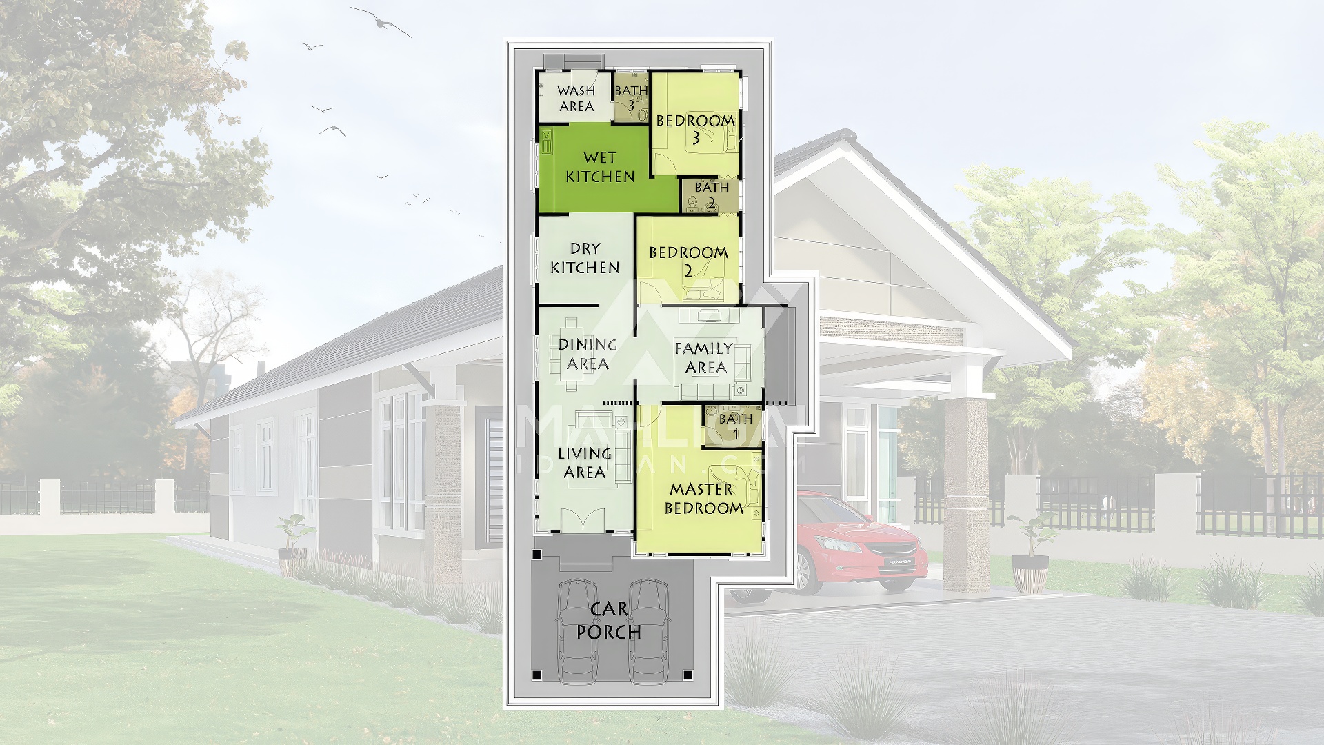 Saiz pelan ini berdasarkan pelan yang sedia ada. Pihak Mahligai Idaman tidak menetapkan sebarang jaminan bahawa pelan ini sesuai dengan bentuk atau keluasan tanah di tapak tanah lain. Kami juga tidak bertanggungjawab sekiranya pelan ini tidak mendapat kelulusan Pihak Berkuasa Tempatan (PBT) / Majlis Perbandaran (MP) di kawasan masing-masing.