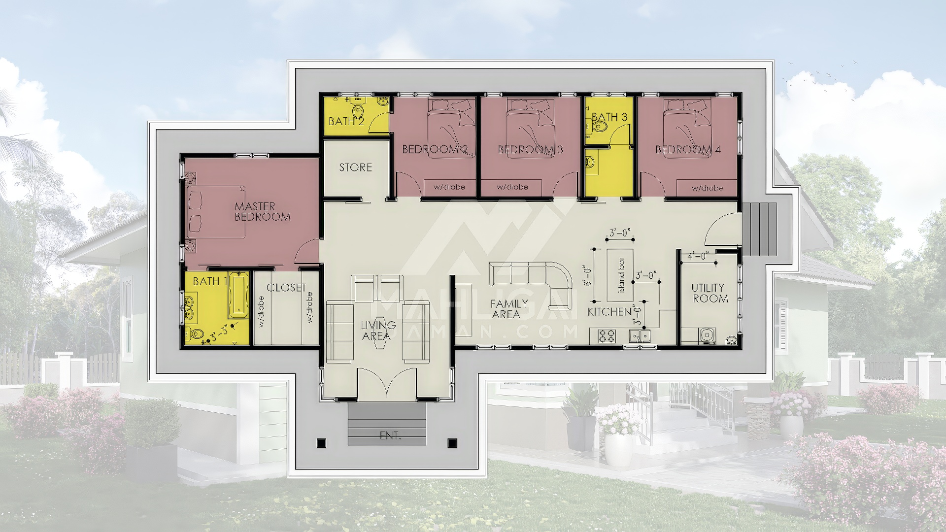 Saiz pelan ini berdasarkan pelan yang sedia ada. Pihak Mahligai Idaman tidak menetapkan sebarang jaminan bahawa pelan ini sesuai dengan bentuk atau keluasan tanah di tapak tanah lain. Kami juga tidak bertanggungjawab sekiranya pelan ini tidak mendapat kelulusan Pihak Berkuasa Tempatan (PBT) / Majlis Perbandaran (MP) di kawasan masing-masing.