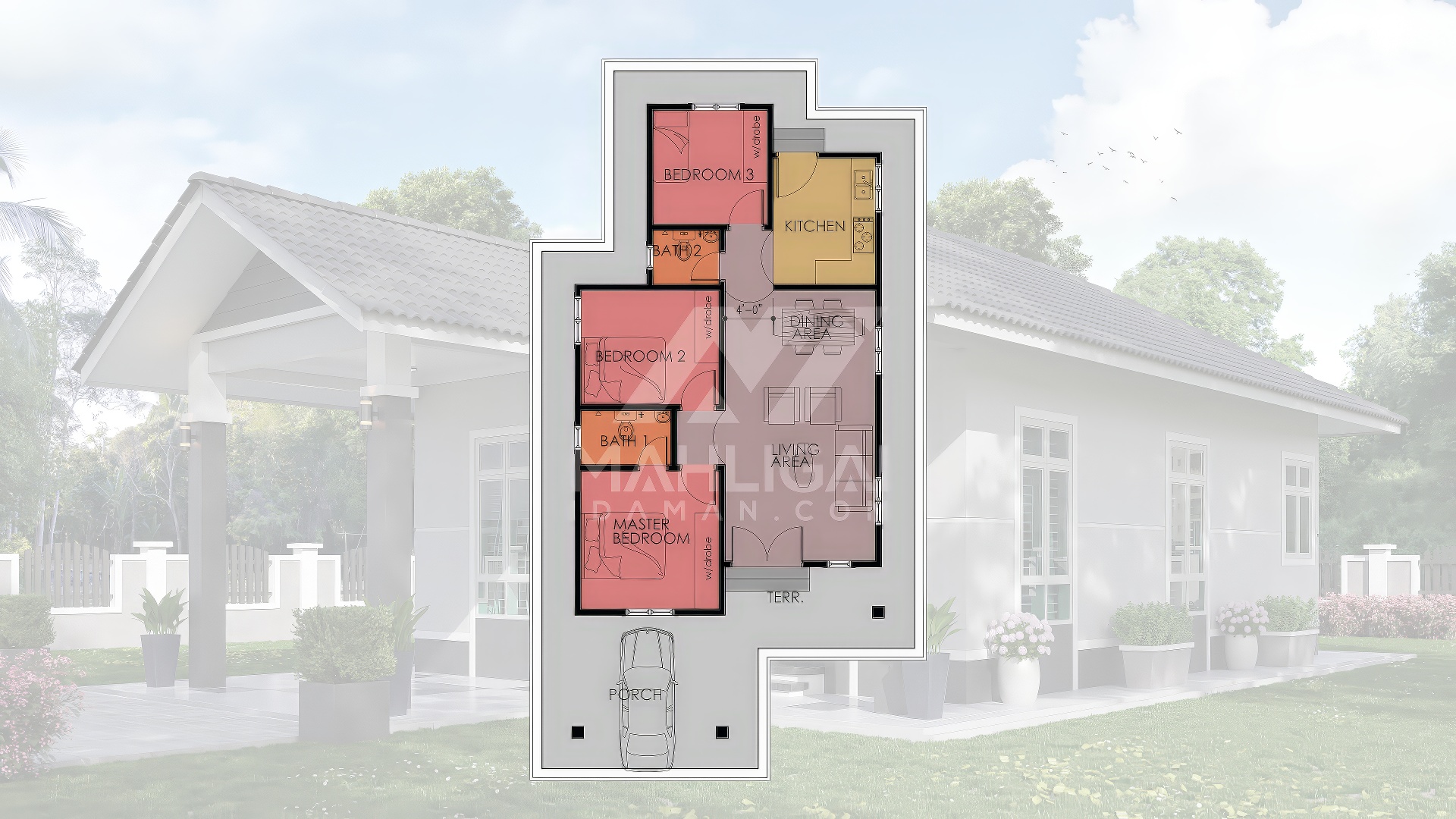 Saiz pelan ini berdasarkan pelan yang sedia ada. Pihak Mahligai Idaman tidak menetapkan sebarang jaminan bahawa pelan ini sesuai dengan bentuk atau keluasan tanah di tapak tanah lain. Kami juga tidak bertanggungjawab sekiranya pelan ini tidak mendapat kelulusan Pihak Berkuasa Tempatan (PBT) / Majlis Perbandaran (MP) di kawasan masing-masing.