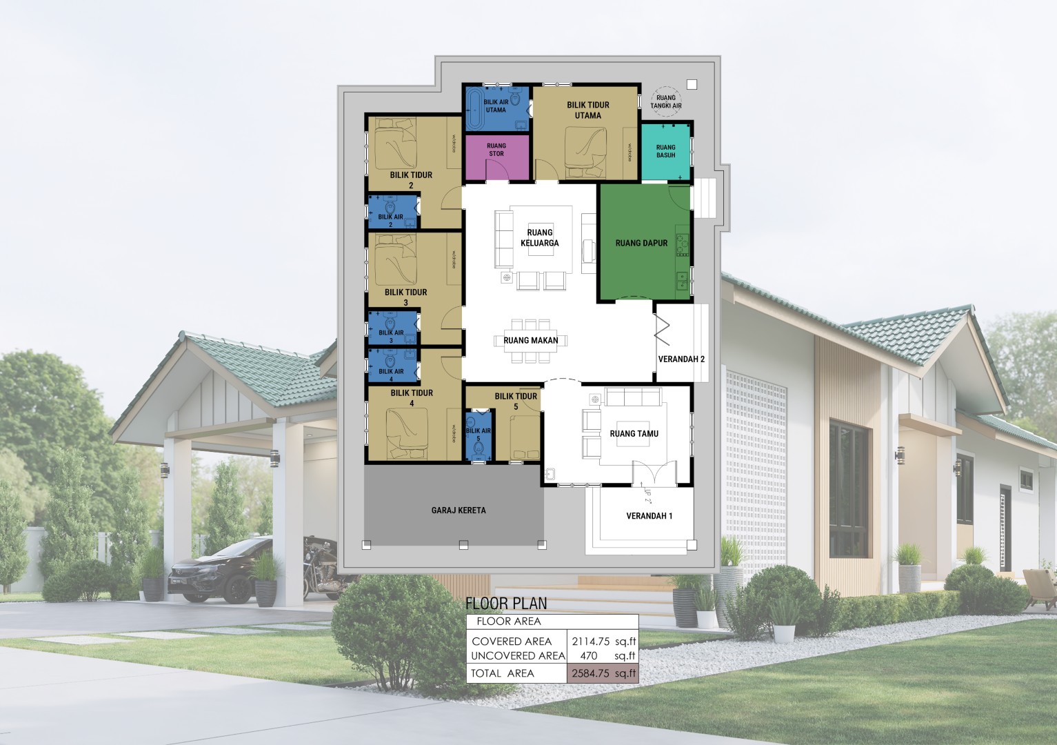 ✅ Pelan pandangan 3D (5 perspektif)