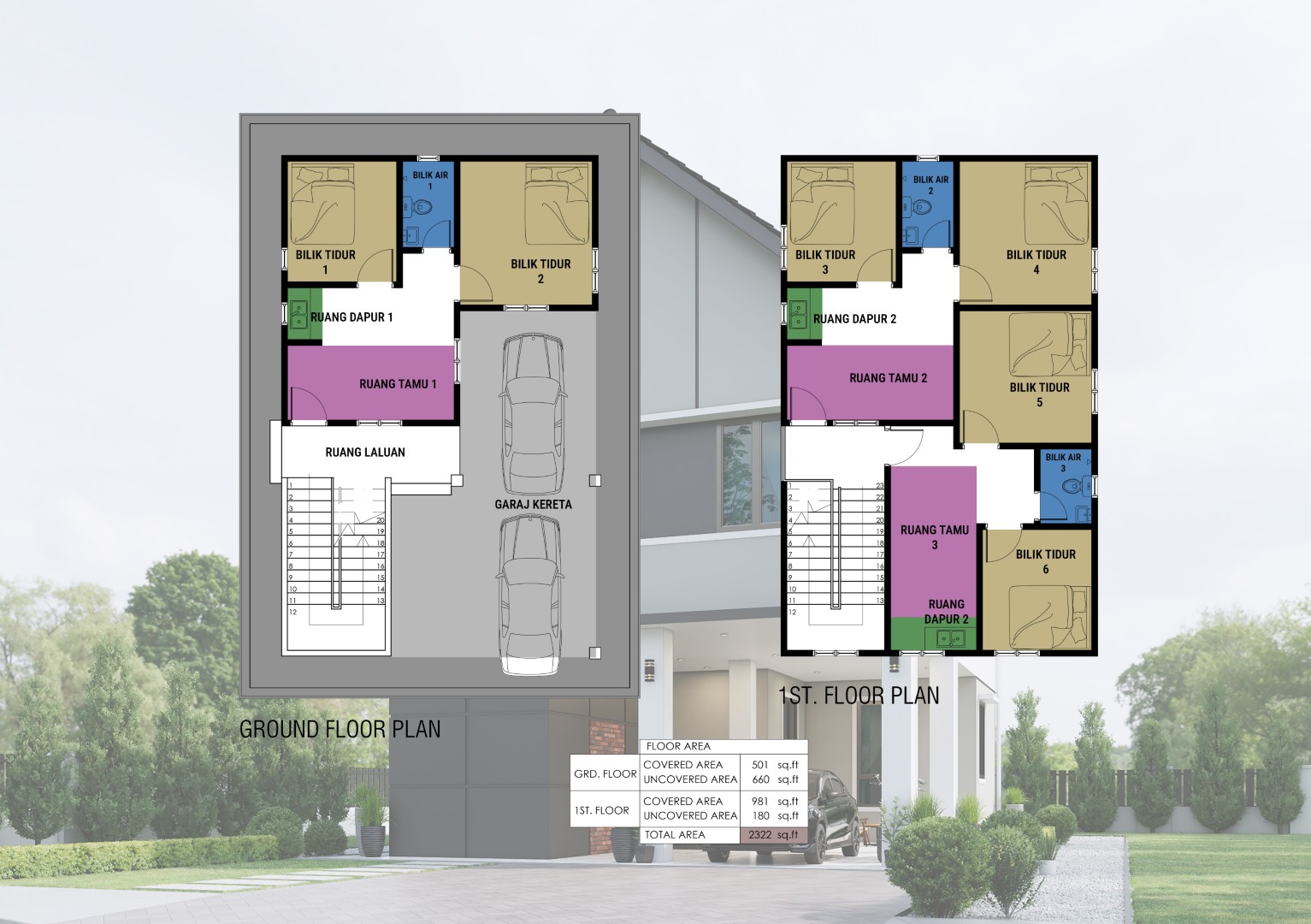 ✅ Pelan pandangan 3D (5 perspektif)