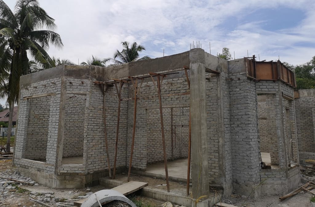 Rumah banglo pelanggan kami di Paka, Dungun, Terengganu dalam proses pembinaan. Banglo ini dibina dengan spesifikasi asas Pakej Gold dengan beberapa aksesori tambahan.