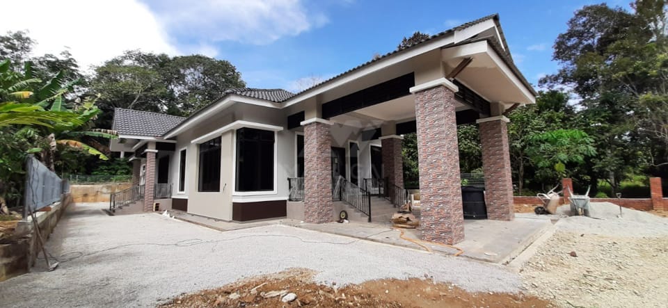 Rumah banglo pelanggan Mahligai Idaman di Batu 30 Machang Kelantan ini dalam proses pembinaan. Banglo ini dibina dengan spesifikasi asas Pakej Gold dengan beberapa aksesori tambahan iaitu batu hiasan pada dinding dan tiang luar rumah, shera board, cornice pada tingkap dan kayu hiasan pada bahagian atas tiang luar rumah.