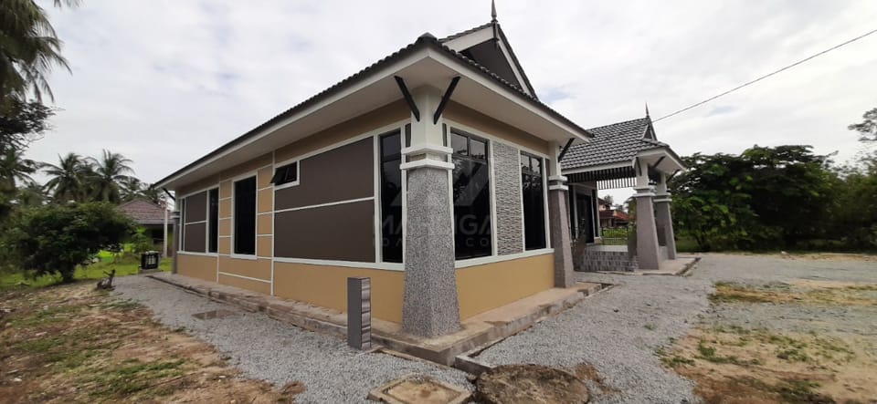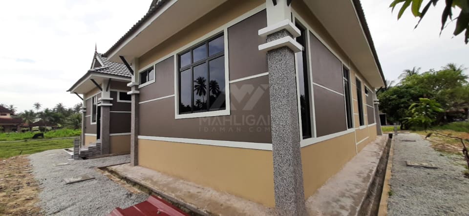 Rumah banglo pelanggan Mahligai Idaman di Bachok Kelantan ini dalam proses pembinaan. Banglo ini dibina dengan spesifikasi asas Pakej Silver dengan beberapa aksesori tambahan iaitu batu hiasan pada dinding dan tiang luar rumah, shera board, cornice pada tingkap, kayu hiasan pada bahagian atas tiang luar rumah, Streel handrail, kayu tetupang dan kayu hiasan pada tiang.