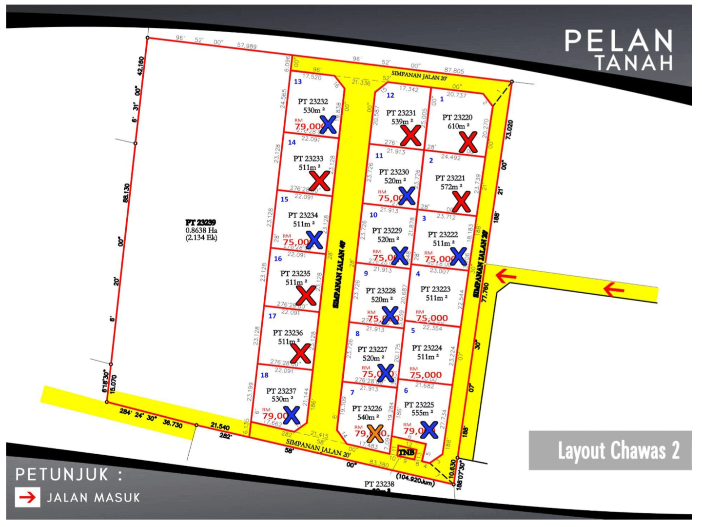 NOTA: sila rujuk table di sebelah untuk melihat status lot sudah di dijual atau masih ada.