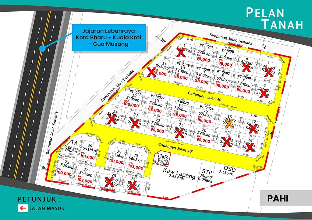 NOTA: sila rujuk table di sebelah untuk melihat status lot sudah di dijual atau masih ada.