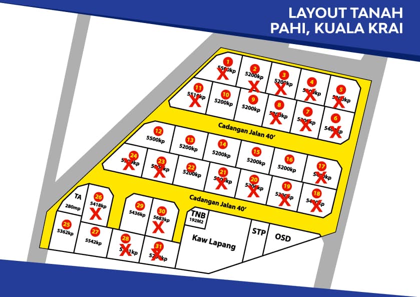 Lokasinya hanya 2km dari Hospital Kuala Krai dan 2.1km dari Sekolah Menengah Kebangsaan Pahi serta 2.6km ke MRSM Kuala Krai menyebabkan kawasan ini menjadi tumpuan orang ramai untuk menetap disini. Anda boleh lihat banyak lagi lot tanah yang pastinya harga lebih murah dari pasaran luar. Jangan lepaskan peluang ini! Miliki Rumah Idaman Anda sekarang.