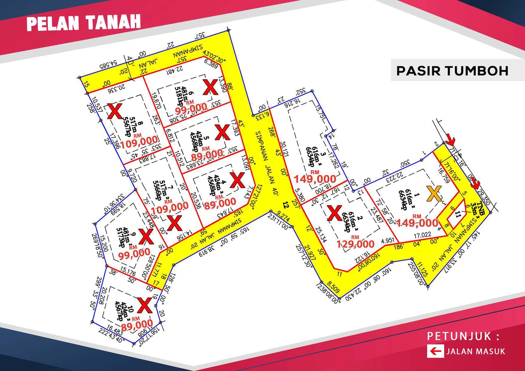 Lokasi lot tanah banglo Pasir Tumboh yang sangat strategik terketak bersebelahan Pondok Pasir Tumboh dan MRSM Pasir Tumboh. Anda boleh lihat banyak lagi lot tanah yang pastinya harga lebih murah dari pasaran luar. Jangan lepaskan peluang ini! Miliki Rumah Idaman Anda sekarang. Lokasi tanah banglo Pasir Tumboh, Kota Bharu ini merupakan lokasi yang sangat strategik. Terdapat pelbagai juga kemudahan asas seperti Masjid Pondok Pasir Tumboh, Bandar Satelit Pasir Tumboh, Pasaraya Mydin, HUSM Kubang Kerian, Bandar Kota Bharu dan sebagainya.