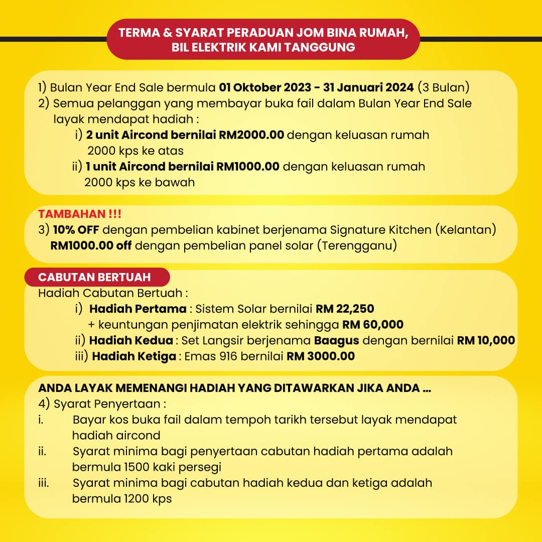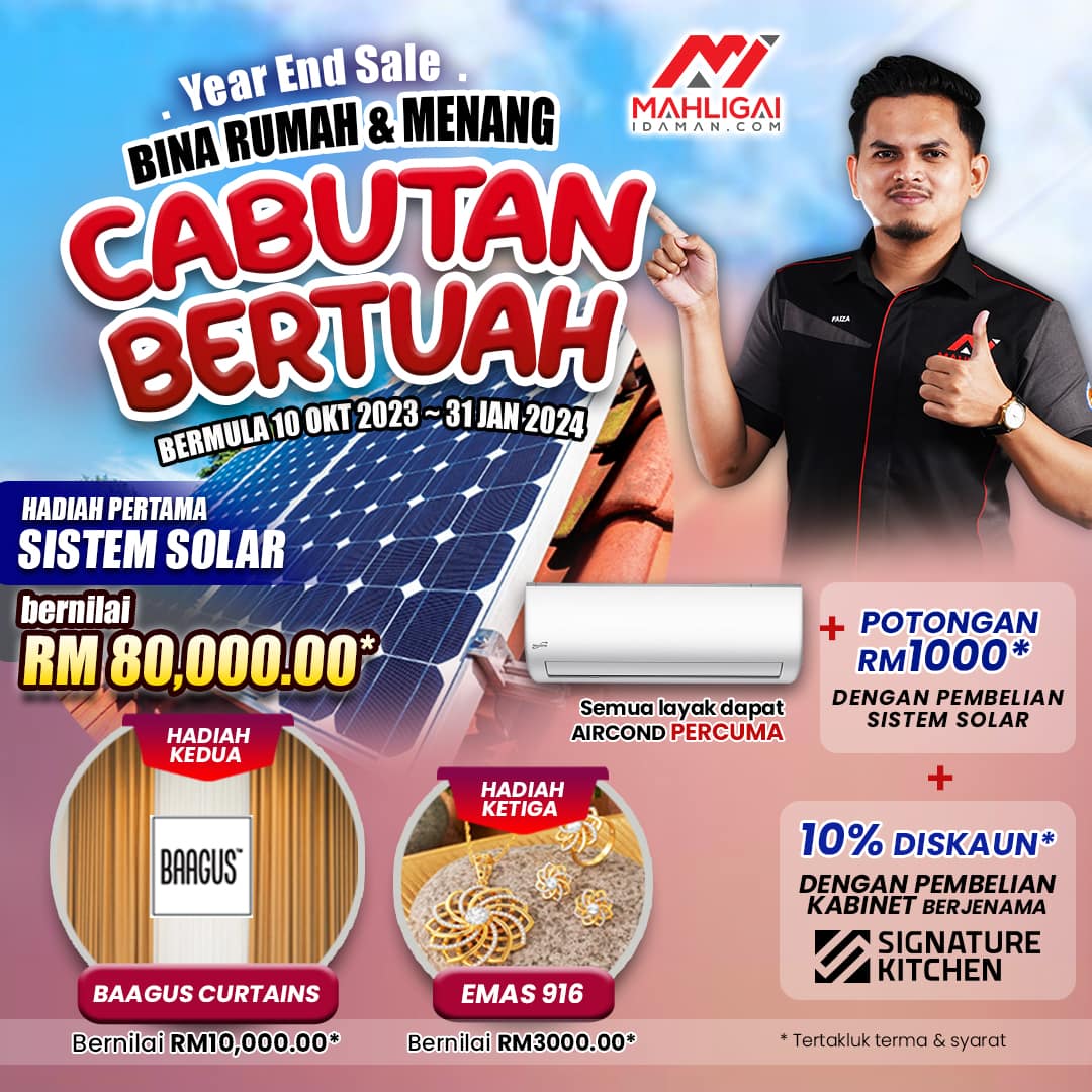 Satu tahun sekali je tau MI buat servis bina rumah + layak dapat aircond & voucher + boleh sertai cabutan bertuah dengan hadiah pertama bernilai sehingga RM22,250 dengan kadar penjimatan elektrik sebanyak RM60,000 !