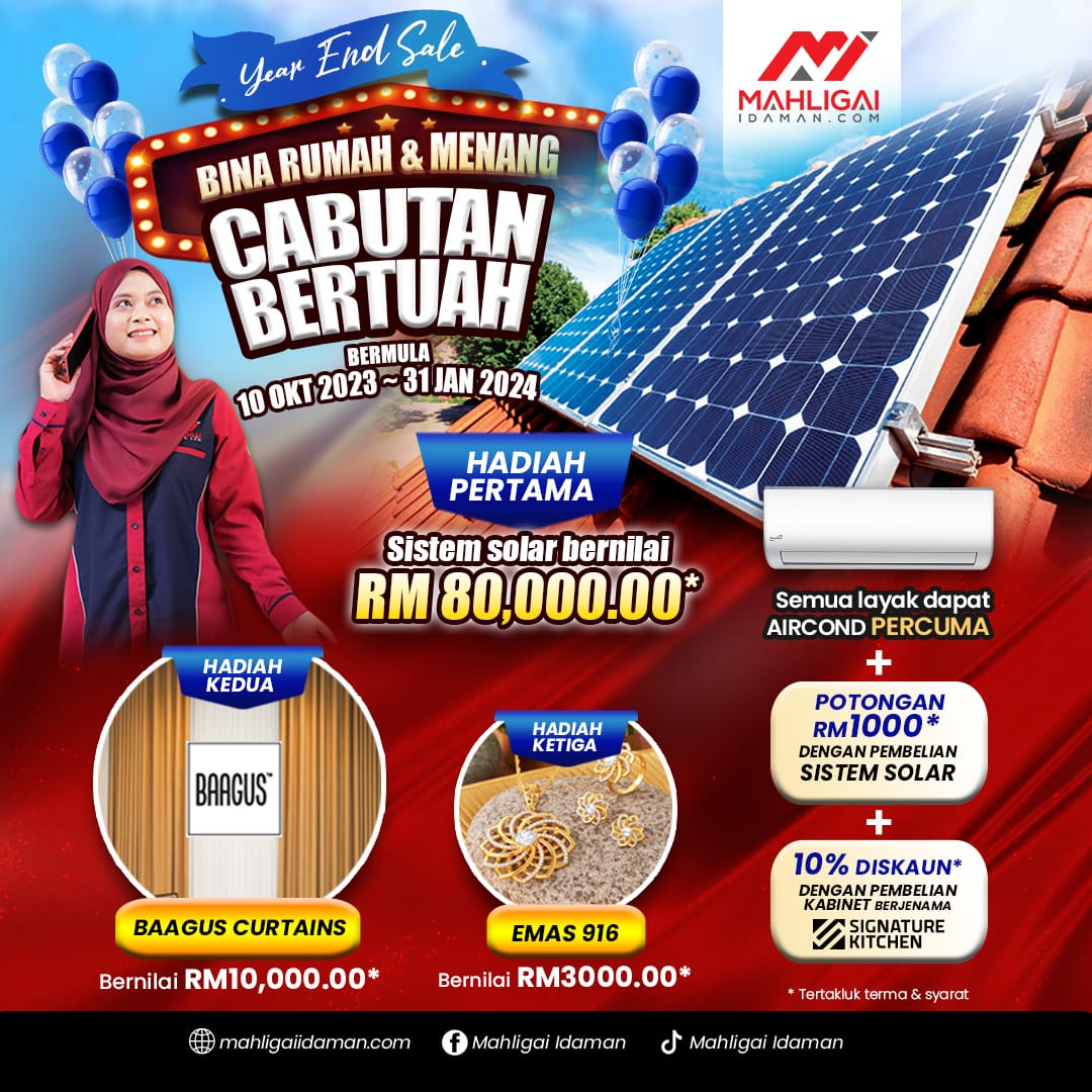 Rebut peluang memenangi hadiah utama iaitu sistem solar yang bernilai RM22,250 dengan kadar penjimatan elektrik sebanyak RM60,000 !